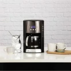 Die Thermokanne aus doppelwandigem Edelstahl hlät den Kaffee bis zu 4 Stunden nach der Zubereitung warm.