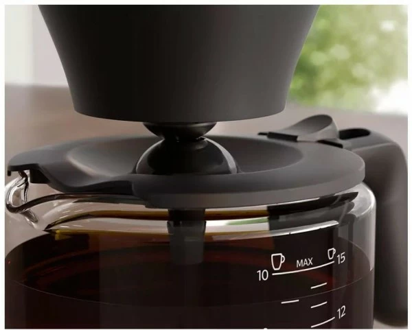 Diese Düse lässt den Kaffee so in die Kanne einfließen, dass er gleichmäßig in der Kanne zirkuliert, um ein optimales und gleichmäßiges Aroma zu garantieren, von der ersten bis zur letzten Tasse.
