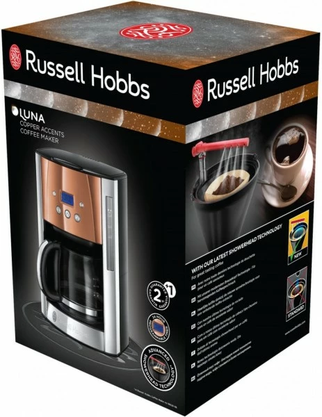 Kaffeemaschinen Russell Hobbs Luna Copper Accents Digitale Glas-Kaffeemaschine Kupfer/cleansteel