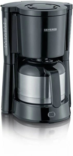 Edelstahl-Thermokanne mit Durchbrühdeckel und praktischer Einhand-Bedienung.