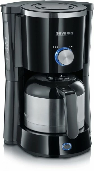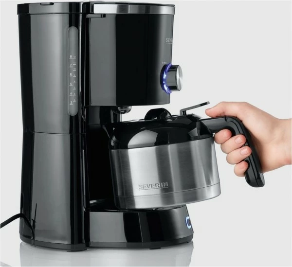 Edelstahl-Thermokanne mit Durchbrühdeckel und praktischer Einhand-Bedienung zur langanhaltenden Temperaturspeicherung.