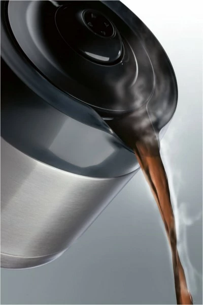 Anschlusswert 1100 Watt max., 8/12 Tassen, 1 Liter, Edelstahl-Thermokanne: aromaschonend, mit Durchbrühdeckel und Bajonettverschluss – ergonomischem soft-touch-Griff, “AromaSensePlus” für optimales Kaffeearoma, auch bei kleinen Brühmengen, Timer mit Memory und Uhrfunktion, Entkalkungssystem, transparenter, abnehmbarer Wassertank mit integriertem Griff – Wasserstandsanzeige beidseitig ablesbar, Filterträger schwenk- und abnehmbar (1 x 4), Tropfstopp, integrierte Kabelaufbewahrung, automatische Abschaltung in den Stand-by-Modus direkt nach Brühende, Netzkabellänge 100 cm, Gerätemaße (HxBxT): 35,5 x 26 x 25 cm, Gewicht: 3,14 kg.